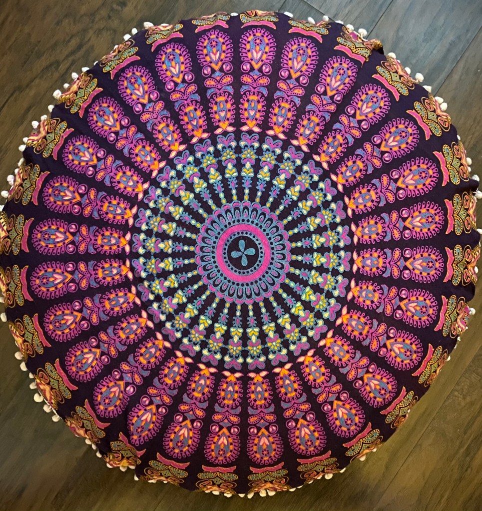 However, I hadn’t worked out yet, had yet to do yoga, hadn’t even really stretched much or moved around a lot. I didn’t think about it, but it really affected my comfort level! It was so hard to sit still. All I felt was the ache in my back, even though I was sitting on my fabulous meditation cushion (thanks Madie!), the tightness of my shoulders, my jaw, my neck. I kept fidgeting, wanting to move around, try to get more comfortable.