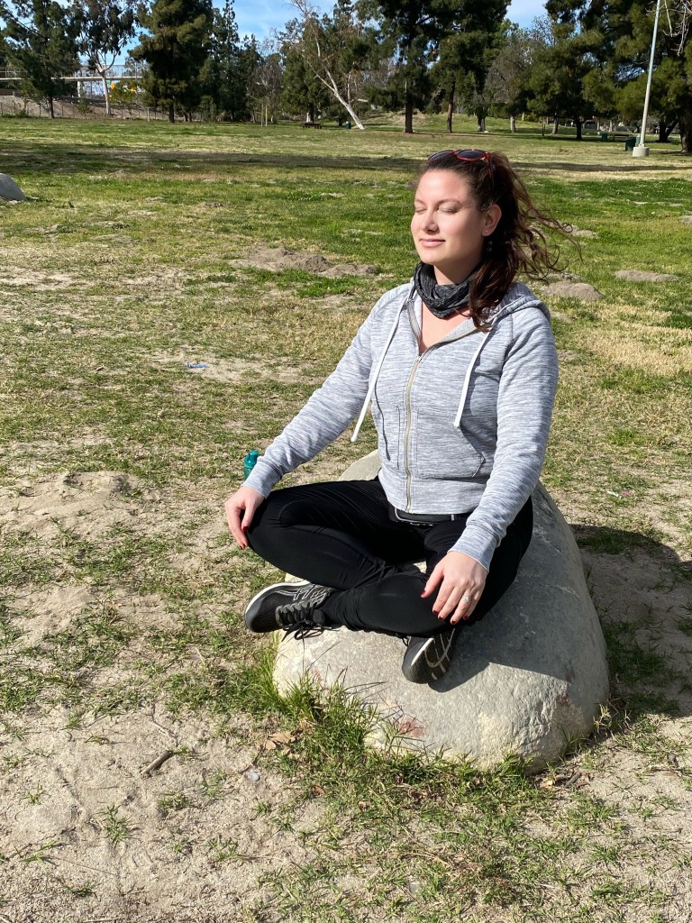 We took some time to get outside yesterday, even though it was incredibly windy. The sunshine felt amazing, though! We did some laps around our neighborhood park, then found a nice, big rock in the sun to sit on and meditate together.