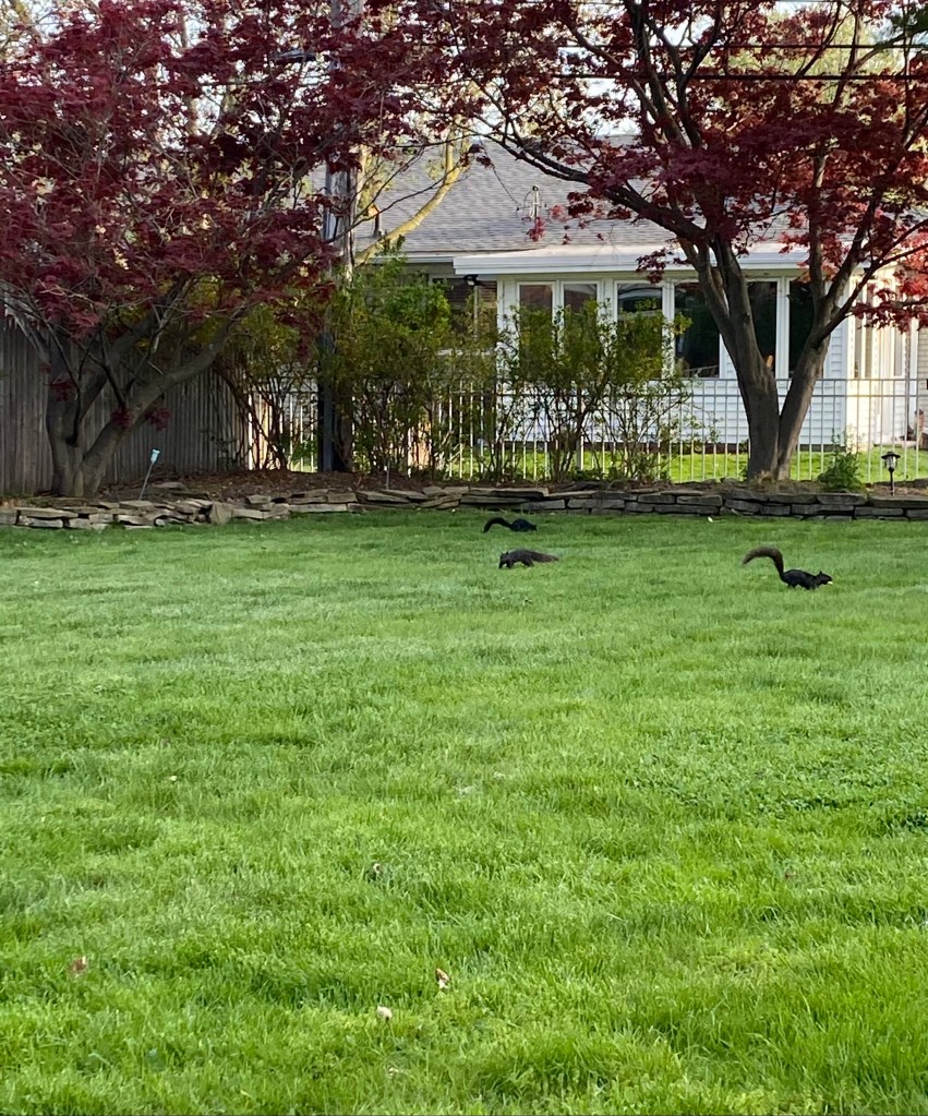 When I opened my eyes at the end of the session, I was in the middle of a little menagerie. I quickly counted ten squirrels and over twenty birds in the yard, some only a few feet from me. I was in heaven!
