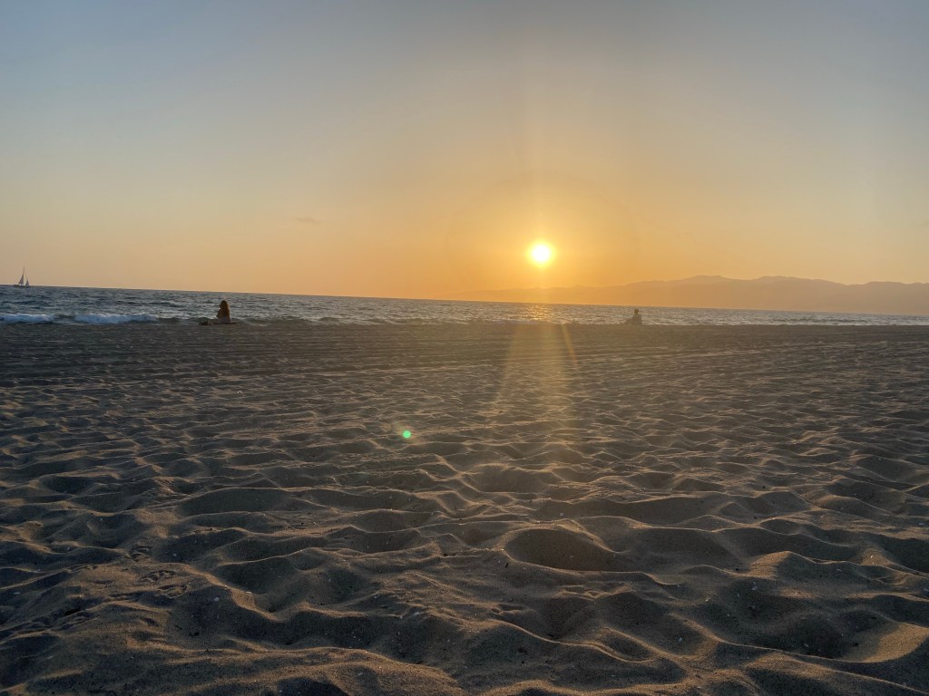 The birds were flying overhead, the whoosh of the waves drowned out almost all other sound, and a sailboat floated by as the sun began to set over the mountains.