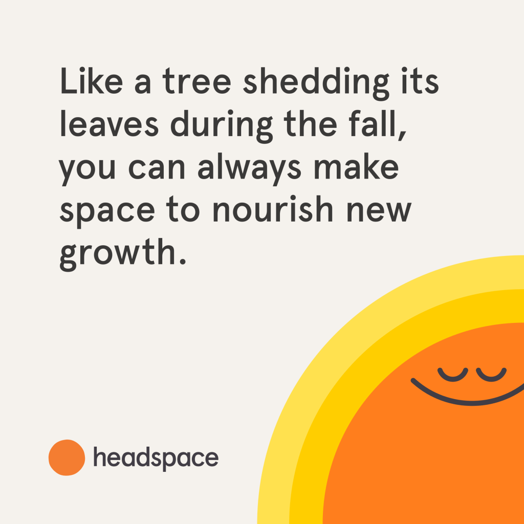 So, for my meditation I chose “Release” from Headspace, to help visualize letting go of what no longer serves me. We imagined we were a tree, rooted and strong, branches reaching upward. Then, we imagined leaves growing, then autumn comes, and many of the leaves change color and fall away. These are the leaves of things you don’t need to carry any longer. They fall, turn to compost, and nourish the land underneath you.